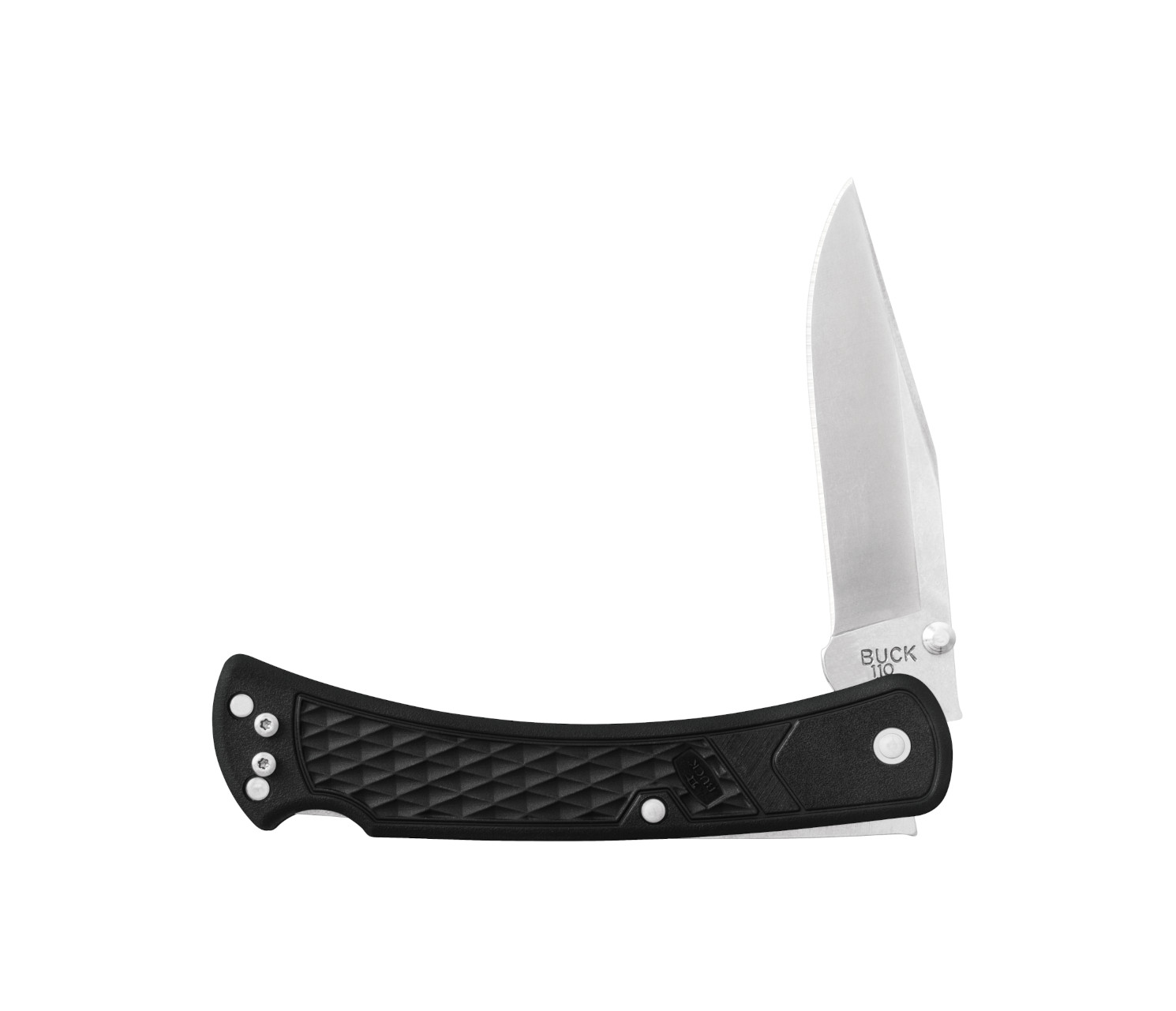 Ο σουγιάς 110 Slim Select έχει μια μοντέρνα εμφάνιση. Διαθέτει ένα κλιπ μεταφοράς και διπλώνει σε 4.875" όταν είναι κλειστό. Η λεπίδα από ανοξείδωτο ατσάλι 420HC παρέχει κορυφαία συγκράτηση των άκρων και οι λαβές είναι κατασκευασμένες από ελαφρύ νάιλον.