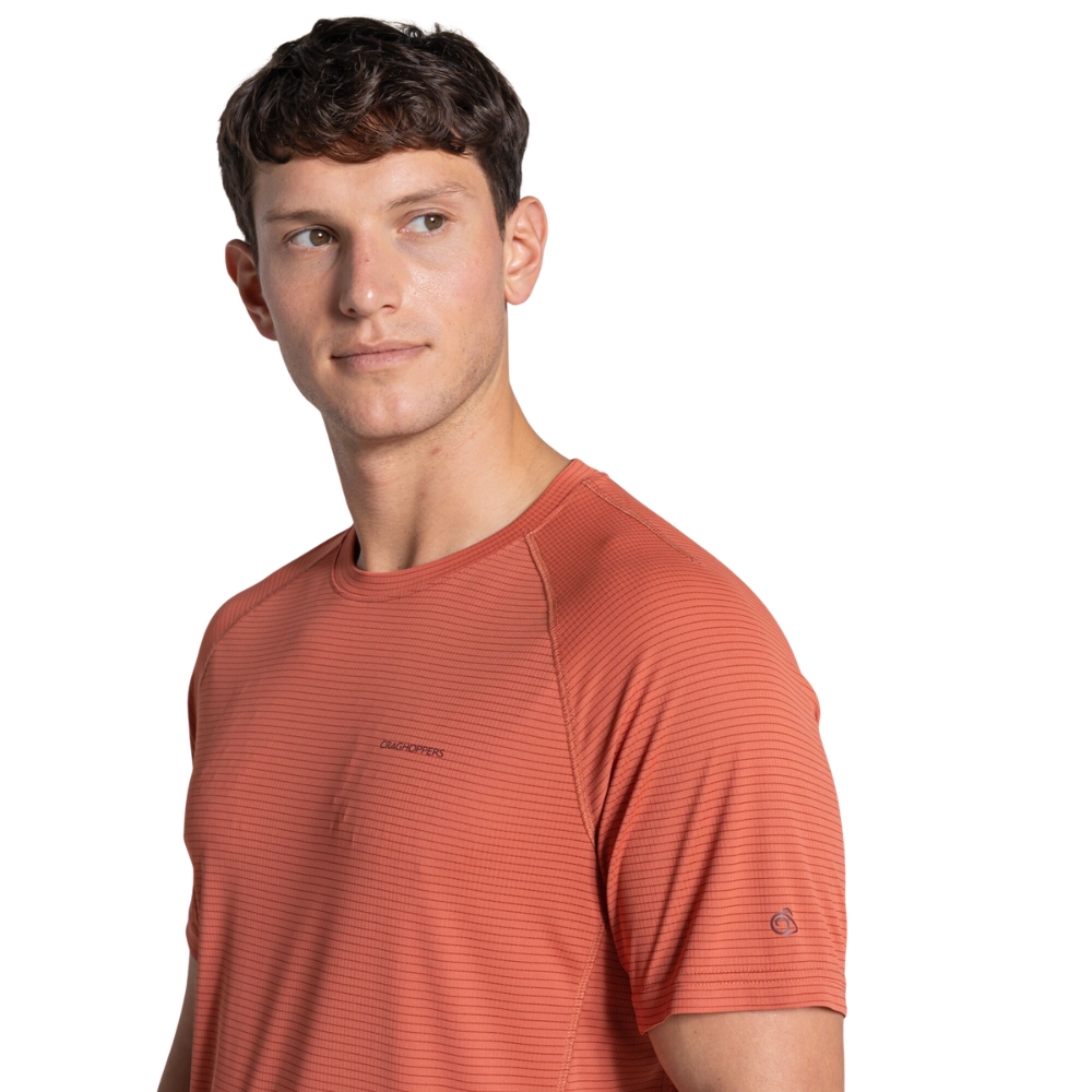 Το CMT1038 είναι ένα ανδρικό τεχνικό κοντομάνικο μπλουζάκι της Craghoppers, σχεδιασμένο για outdoor και καθημερινές δραστηριότητες. Κατασκευασμένο από προηγμένο ύφασμα SolarShield+ με ειδική grid υφή, προσφέρει προστασία από την ηλιακή ακτινοβολία, ενώ παράλληλα συμβάλλει στην αποφυγή τσιμπημάτων εντόμων.